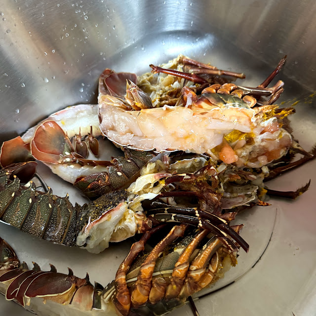 Since anak2 soleh solehah balik, kita kerjakan 3 LOBSTER daddy nya dapat dari laut sebelum ni. Belah dua dulu.